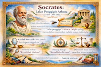 🧠 Socrates (sekitar 469–399 SM) merupakan salah seorang tokoh paling berpengaruh dalam sejarah falsafah Barat, meskipun beliau tidak meninggalkan sebarang karya bertulis. Segala pengetahuan tentang dirinya diperoleh terutamanya melalui tulisan murid-muridnya—khususnya Plato—serta sumber klasik kemudian. Kehidupan, pemikiran, dan kematiannya yang dramatik terus membentuk falsafah, etika, dan pendidikan hingga ke hari ini.