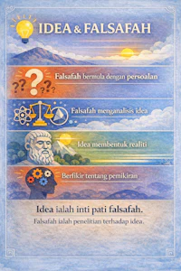 🧠 Idea merupakan nadi utama yang menghidupkan falsafah. Falsafah, pada terasnya yang paling asas dan mendalam, ialah suatu penyelidikan yang berdisiplin dan sistematik terhadap idea—apakah maknanya, sama ada ia benar atau tidak, serta bagaimana idea-idea tersebut membentuk realiti, pengetahuan, dan kehidupan manusia secara menyeluruh.